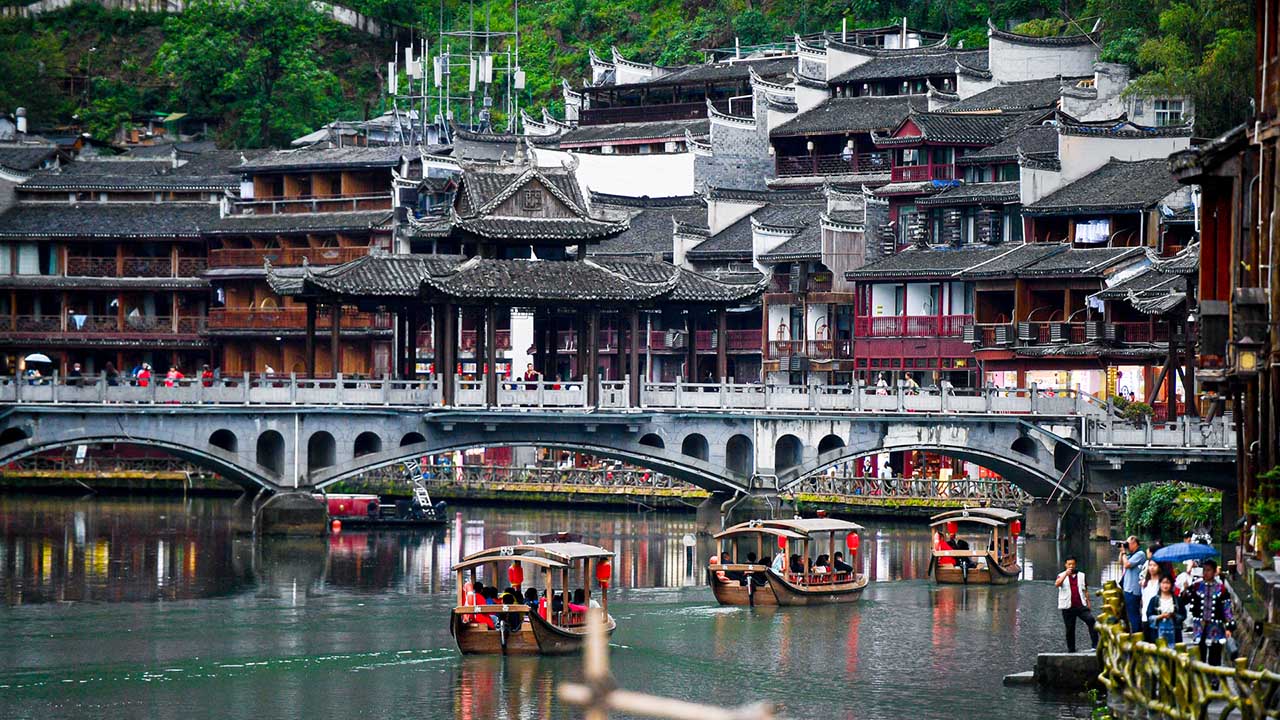 Citywalk combo vé 2 ngày: Đông Môn, nhà cổ Shen Congwen, bảo tàng dân tộc Miêu, miếu cổ, cầu đá nhảy sông (~130 CNY).